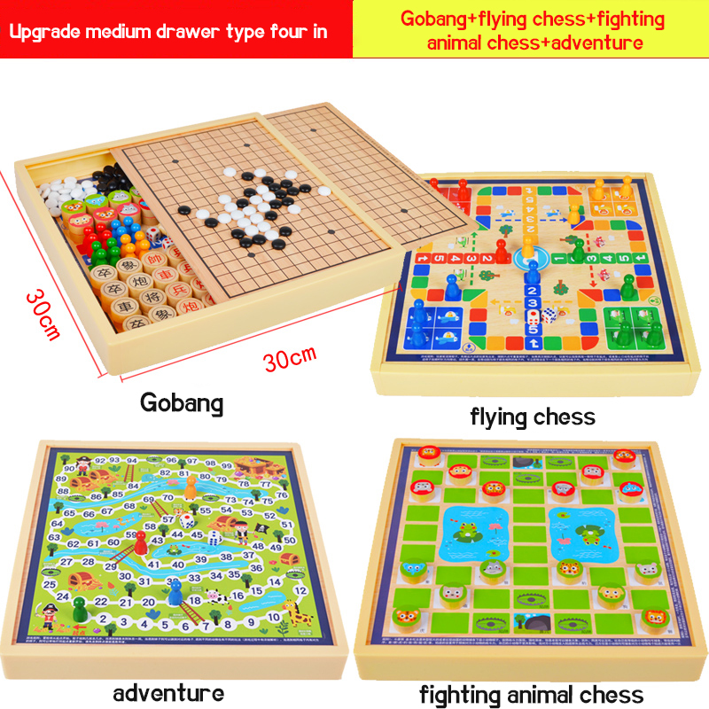 Checkers Flying chess, backgammon, fighting animals, board games, multifunctional chess, children's students, educational wooden toys