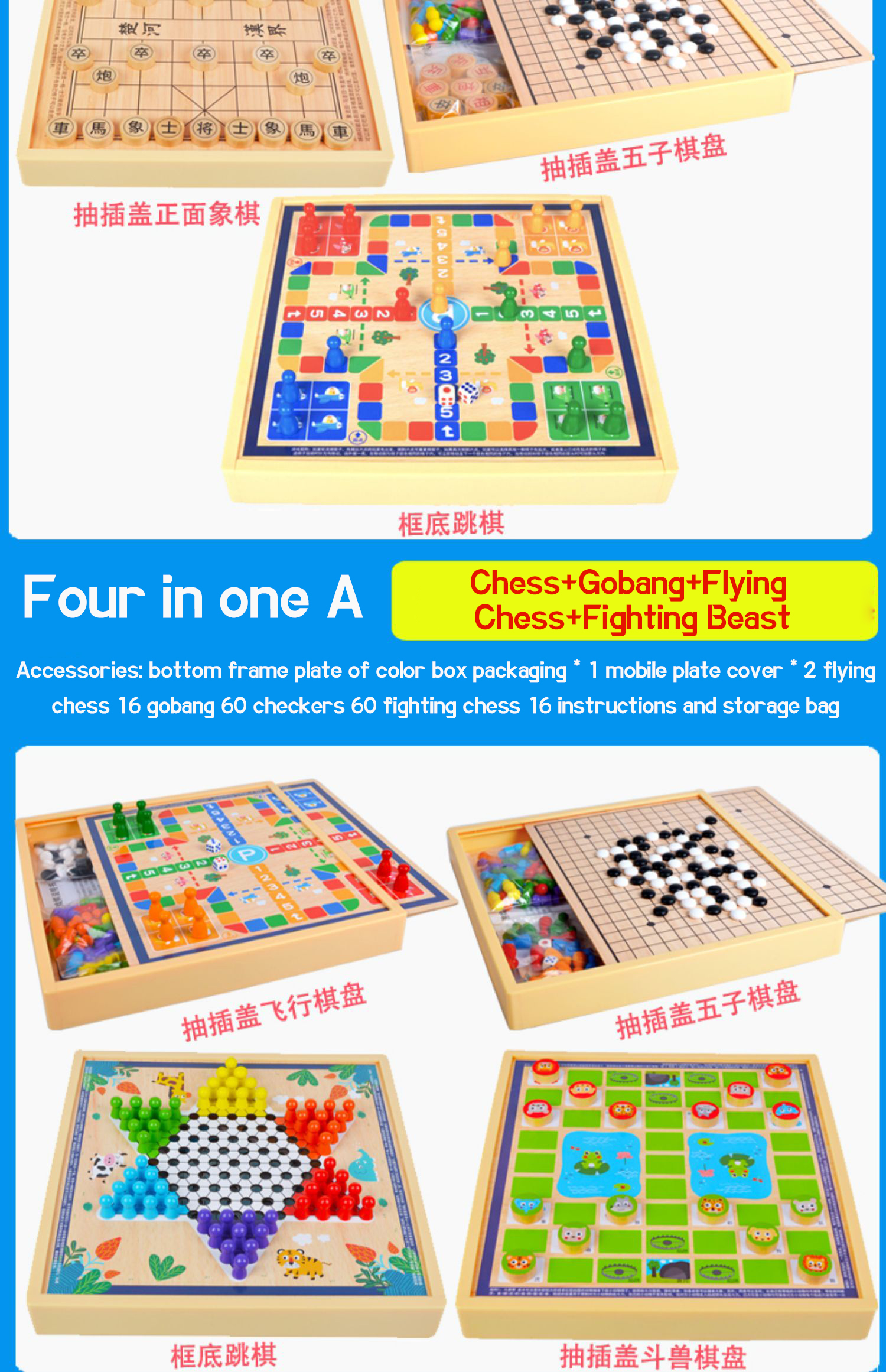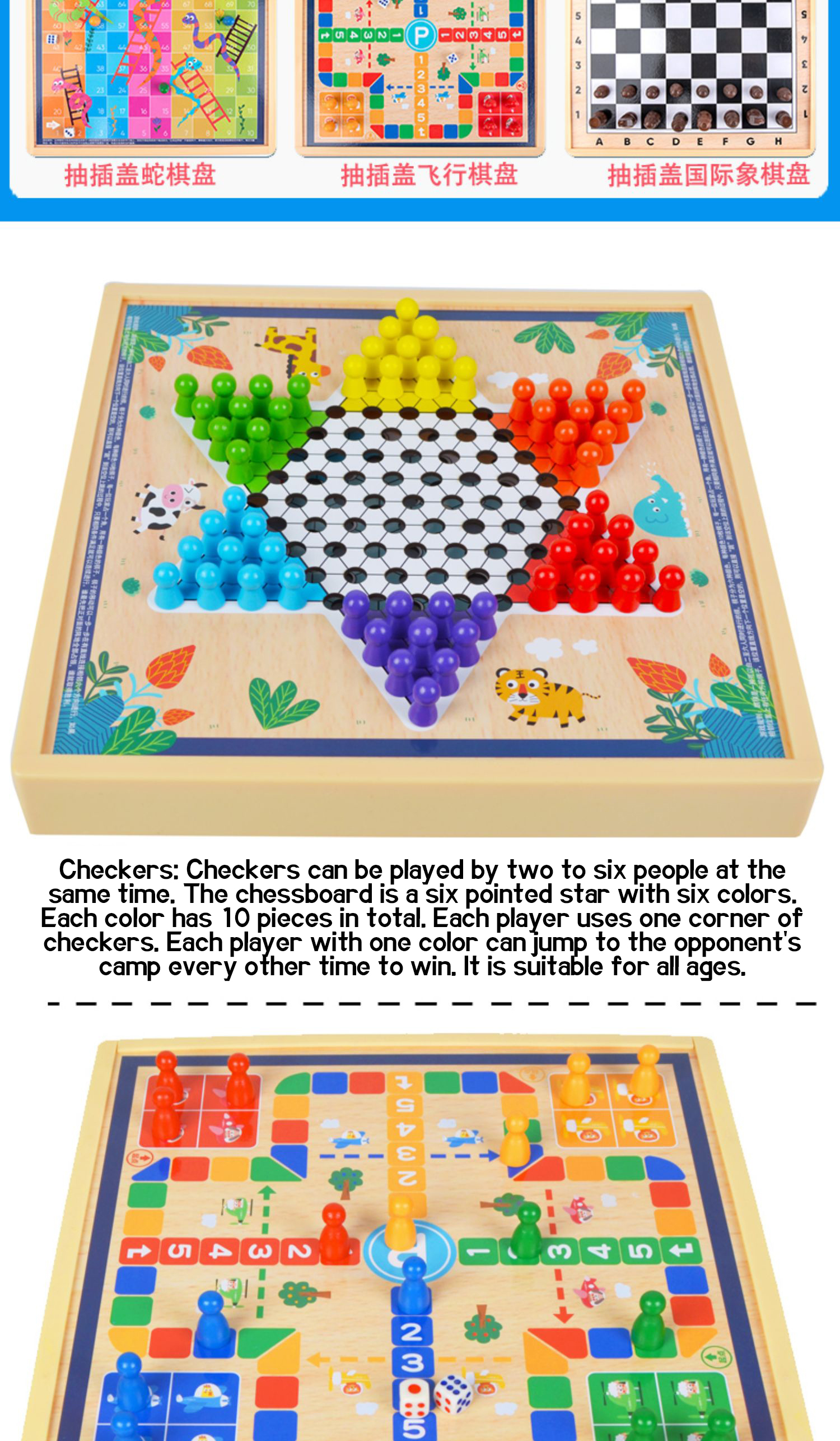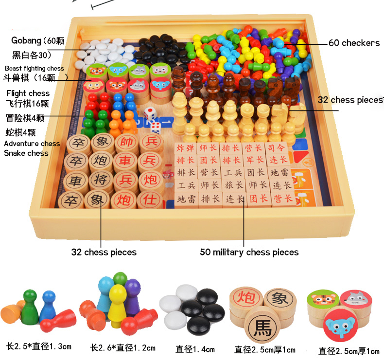 PRODUCTS > Thinking training > Checkers Flying chess, backgammon, fighting animals, board games, multifunctional chess, children's students, educational wooden toys