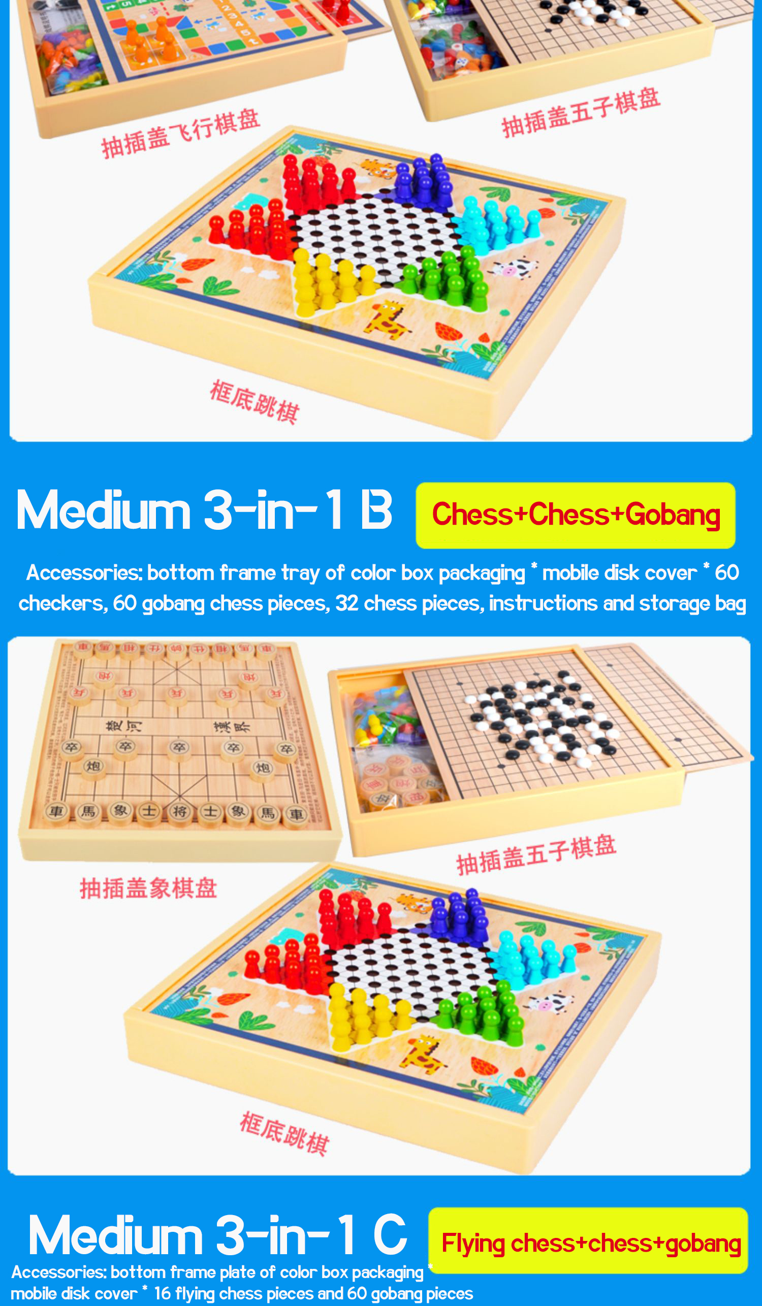 30*30cm four-in-one (Gomoku + flying chess + fighting animal chess + adventure chess) medium model 30*30cm six-in-one (five-child flying chess, fighting animal chess, adventure snake chess) medium model 30*30cm two optional (2 message remarks) medium size 30*30cm three-in-one (checkers + backgammon + flying chess) medium model 30*30cm three-in-one (checkers + backgammon + chess) medium model 30*30cm three-in-one (flying chess + gomoku + chess) medium model 30*30cm three optional (message remarks 3 samples) medium model 30*30cm four self-selected (4 message remarks) medium model 30*30cm five self-selected (5 message remarks) medium model 30*30cm six optional (message remarks 6 samples) medium model 30*30cm 7-in-1 (Checkers, Gomoku, Flying Chess, Xiangqi, Military Chess, Fighting Beasts, Adventure) 30*30cm 8-in-1 (checkers, backgammon, flying chess, chess, chess, military chess, fighting animal chess, adventure snake chess) 30*30cm Checkers Gomo, Flying Chess, Military Chess, Fighting Beast, Adventure, Snake Chess, Chess) 30*30cm 10-in-1 (9-in-1 + 300 pieces Reversi Go (180 pieces each) New large size 38cm*38cm three-in-one (jump five fly) New large size 38cm*38cm three-in-one (checkers five-child adventure chess) New Large 3-in-1 (Checkers Flying Chess) New Large 4-in-1 (Jump Five Flying Elephants) New Large 4-in-1 (Jump 5 Fly) New Large 5-in-1 (Jump Five Flying Bucket) New Large 5-in-1 (Jump Five Flying Elephant Jump) Beech wood large size 6-in-1 35cm (Go, checkers, flying chess, chess, backgammon + fighting animal chess) Beech wood large five-in-one 35cm (Go, backgammon, checkers, chess Beech large seven-in-one 35cm (Go, checkers, flying chess, chess, backgammon, gomoku, military chess, fighting animal chess.) Magnetic Medium 5-in-1 (Checkers, Gomoku, Flying Chess, Adventure Chess) Magnetic Medium 9 in 1 (Checkers, Non-Magnetic Goko, Flying Chess, Fighting Beast, Adventure, Snake Chess, Chess