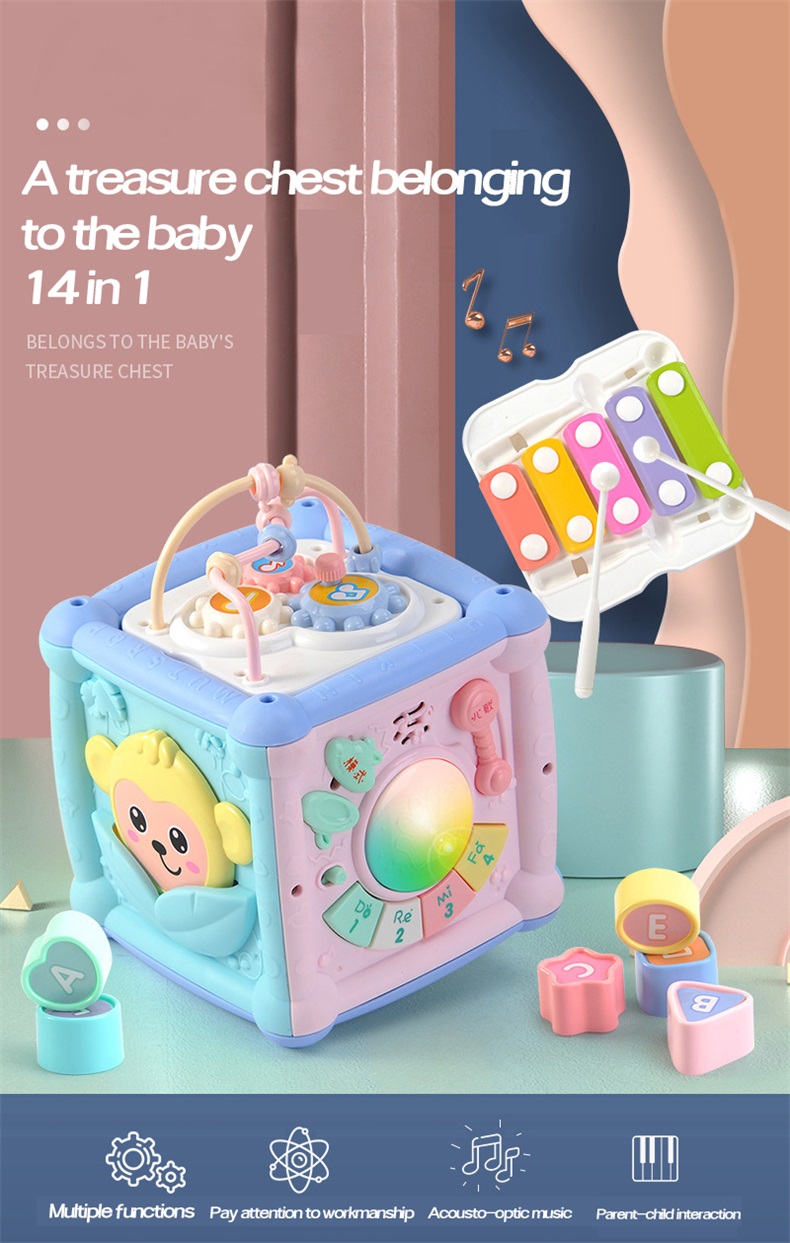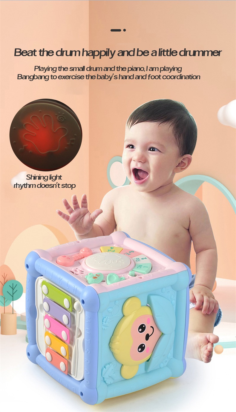 Kinderpflegeprodukte > Akustische übung > Lustige Babyspielzeuge, Lichter, Musikgeschichten, Hand geklatschte Trommeln, Kinder 14 in 1-Gesicht-Trommler, spielen Klavier und klatschen die Trommeln