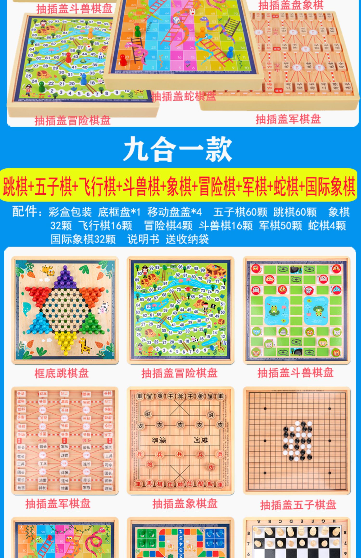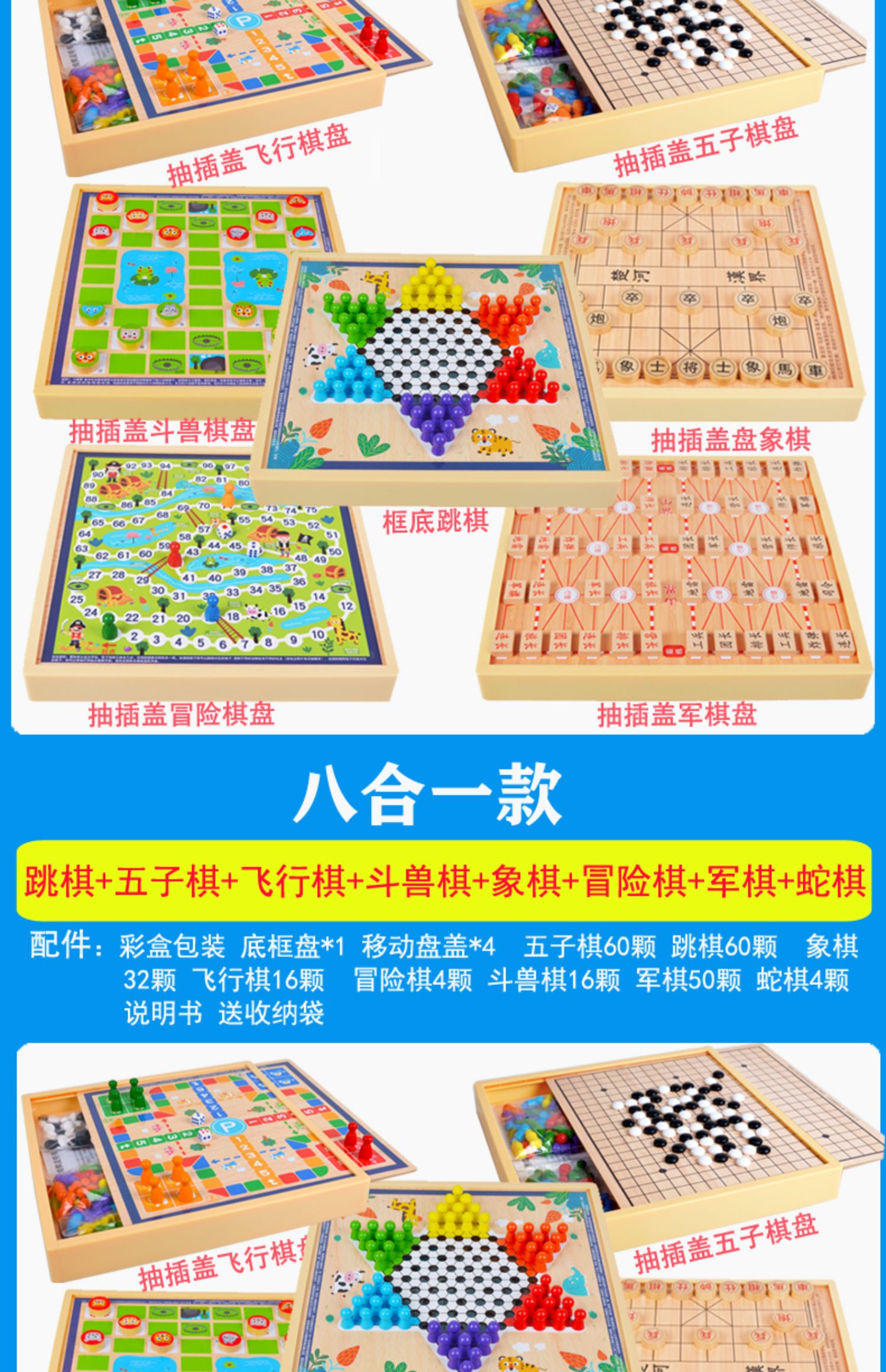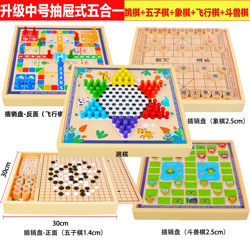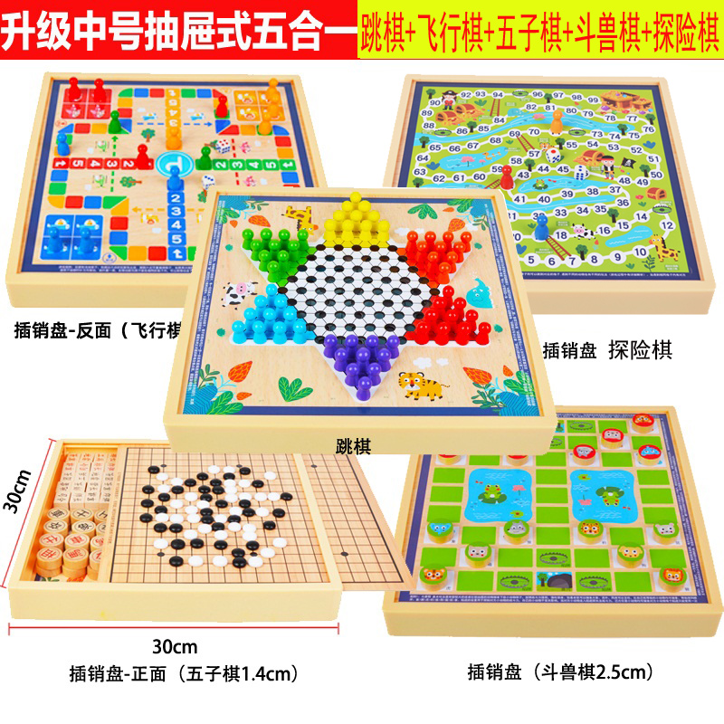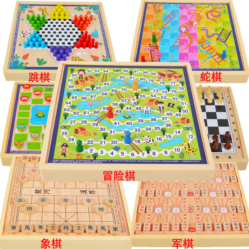 育儿产品 > 益智玩具 > 跳棋 飞行棋五子棋斗兽棋桌面游戏多功能棋儿童学生益智木制玩具