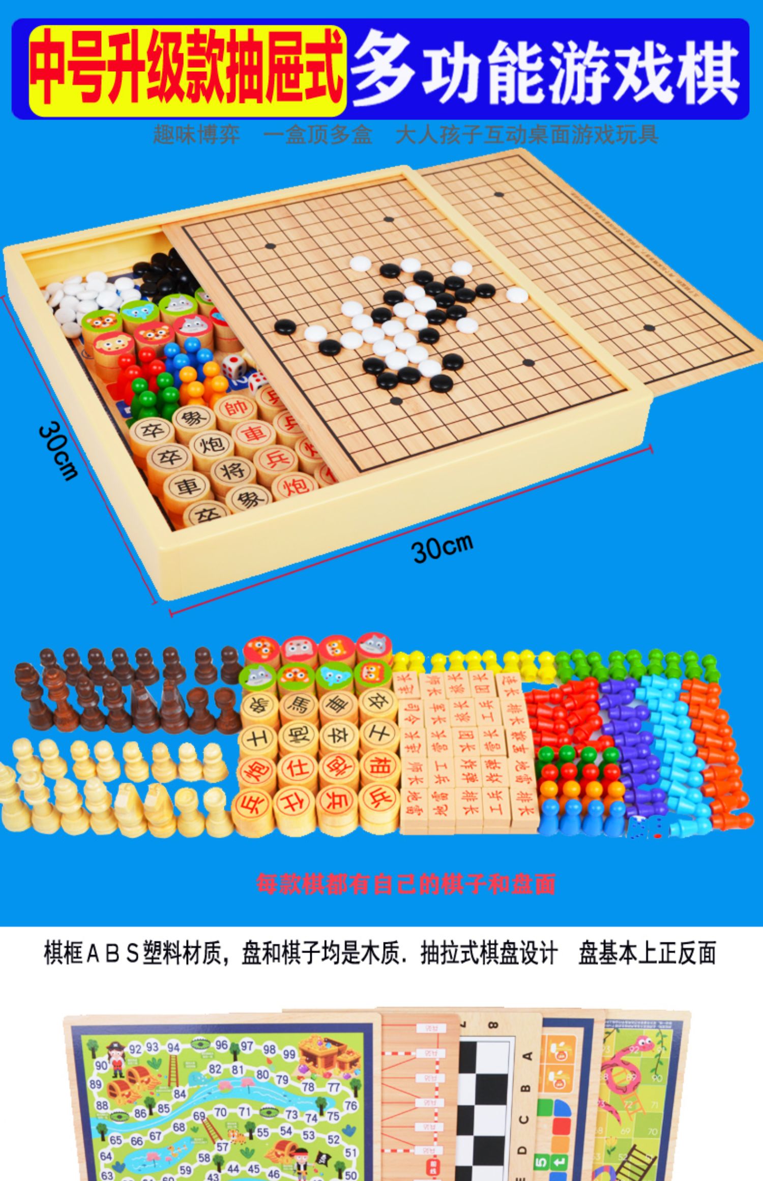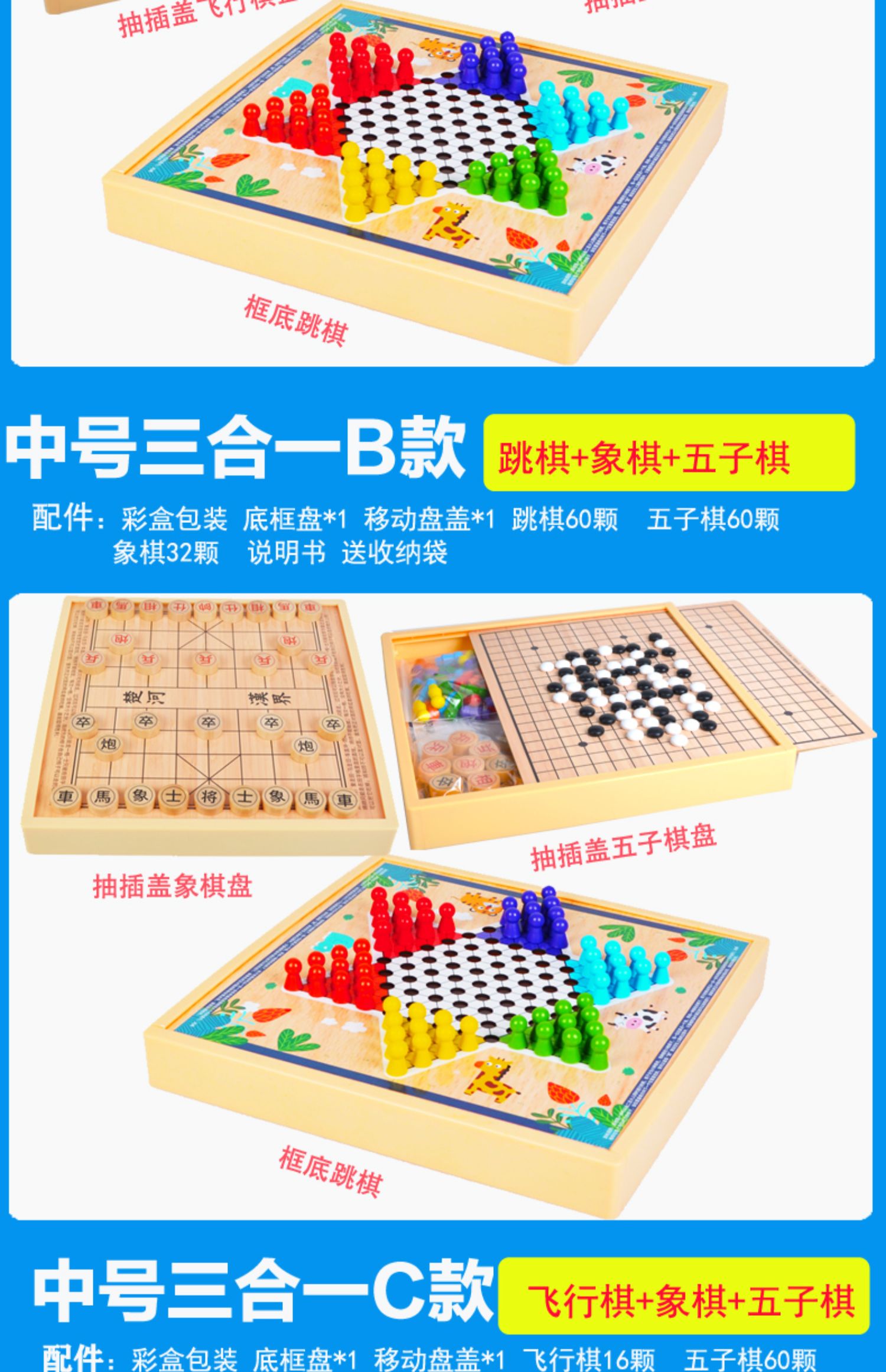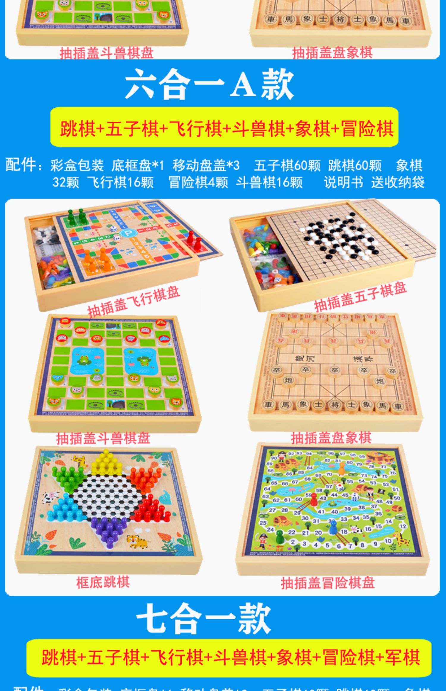 30*30cm四合一(五子棋+飞行棋+斗兽棋+冒险棋)中号款 30*30cm六合一(五子飞行象棋斗兽棋冒险蛇棋)中号款 30*30cm两样自选(留言备注2样)中号 30*30cm三合一(跳棋+五子棋+飞行棋)中号款 30*30cm三合一(跳棋+五子棋+象棋)中号款 30*30cm三合一(飞行棋+五子棋+象棋)中号款 30*30cm三样自选(留言备注3样)中号款 30*30cm四样自选(留言备注4样)中号款 30*30cm五样自选(留言备注5样)中号款 30*30cm六样自选(留言备注6样)中号款 30*30cm七合一(跳棋五子棋飞行棋象棋军棋斗兽棋冒险) 30*30cm八合一(跳棋五子棋飞行棋象棋军棋斗兽棋冒险蛇棋) 30*30cm跳棋五子飞行象棋军棋斗兽冒险蛇棋国际象棋) 30*30cm十合一(九合一+300颗黑白棋围棋(各180颗 ) 新大号38cm*38cm三合一(跳五飞) 新大号38cm*38cm三合一(跳棋五子冒险棋) 新大号三合一(跳棋飞行象棋) 新大号四合一(跳五飞象) 新大号四合一(跳五飞冒) 新大号五合一(跳五飞斗冒) 新大号五合一(跳五飞象冒) 榉木大号六合一35cm(围棋跳棋飞行棋象棋五子棋+斗兽棋) 榉木大号五合一35cm(围棋五子棋跳飞行棋象棋 榉木大号七合一35cm(围棋跳棋飞行棋象棋五子棋军棋斗兽棋 磁性中号五合一(跳棋五子飞象棋冒险棋) 磁性中号9合一(跳军棋无磁五子飞行象棋斗兽冒险蛇棋国际象棋
