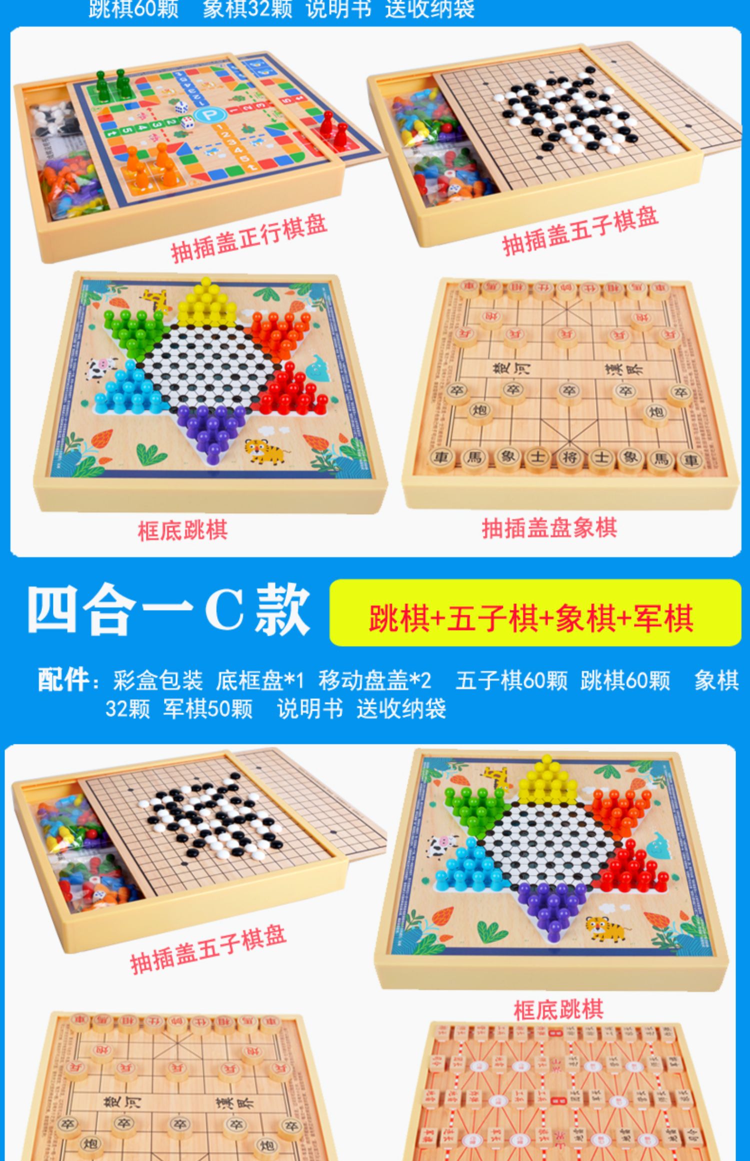 跳棋 飞行棋五子棋斗兽棋桌面游戏多功能棋儿童学生益智木制玩具